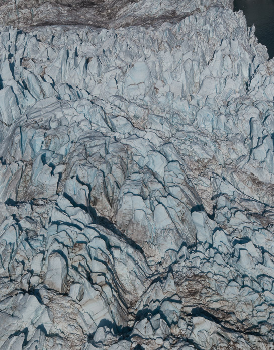 这是从一架小型飞机上看到的Margerie Glacier(玛哲瑞冰川)抵达海洋的部分。从秃鹰的视角往下看,展现的是锯齿状的不平坦的冰川表面。我仍记得听人说的公园巡护员和游轮上的游客有一次看见了一头棕熊穿过Margerie Glacier(玛哲瑞冰川)...那头棕熊是如何找到了穿越冰川的路是一个奇迹! 摄影师: Bill Eichenlaub