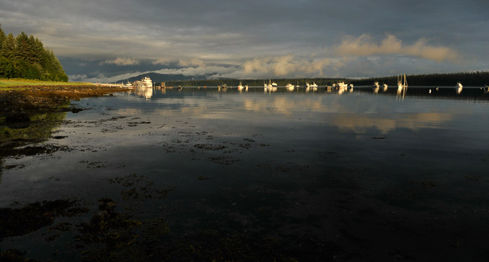 One early morning I awoke startled to feel a shaft of sunlight on my face. I raced outside along with several others in their pajamas to soak in the sun, a welcome but brief respite from three weeks of continuous rain. Glacier Bay can receive almost eighty inches of rain in a year because it is part of a temperate rainforest zone stretching from northern California to Southeast Alaska. Photographer: Tim Rains