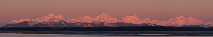The Fairweather Range, including, from left to right: La Perouse Mountain, Mt. Crillon, Mt. Bertha, Mt. Salisbury, Mt. Fairweather and Mt. Quincy Adams Photographer: Sean Neilson