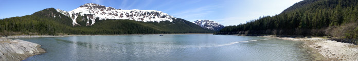 This cove is a good anchorage on the outer coast, but it is very difficult to thread the elongated entrance into the cove. And every year the glacially fed river that empties nearby fills the entrance with more and more silt. Winter storm waves move the silt and change the shallow channel. 40 years ago fishing boats regularly used this cove as safe harbor, but today the entrance is so shallow and shifting it is only used by adventurous captains with small, shallow draft boats at high tide. Photographer: Bill Eichenlaub