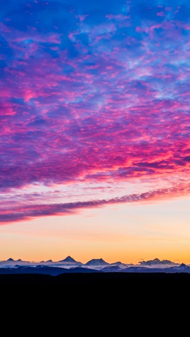 An aerial shot captures the imposing peaks of Glacier Bay's Fairweather Range bathed in the ethereal pink and blue hues of a magnificent sunset. The interplay of light and shadow highlights the dramatic, icy landscape from a unique, high vantage point. This shot, taken from directly above the photographer's home in Gustavus, looks north nearly 70 miles. While drone flights and photography are not permitted in the park, we can at least look INTO the park from above, yet beyond its boundaries. Photographer: Sean Neilson
