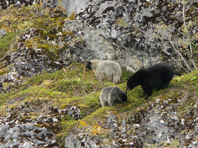 The "Glacier Bear" as we locally call them are black bears with an unusual, whitish blue fur. We see them occasionally on the western shores of Glacier Bay. Photographer: Sean Neilson