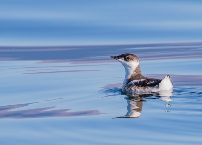 Marbled murrelets are small, but mighty. They swim underwater as well as above it. They nest in the old growth forests of the Pacific Northwest from California to Alaska. Very little was known about this seabird’s nesting behavior until 1974 when a nest was discovered deep in the forest, high up in a moss-laden tree. Photographer: Sean Neilson