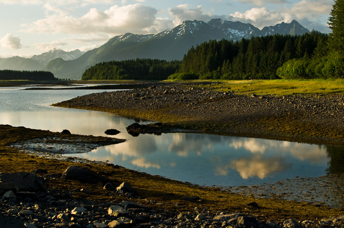 潮間帯。荒涼とし、それでいて穏やかな秘密の場所。大きな岩壁のてっぺんによじ登り、そこに座って約半時間、日の光が山頂を金色に照らし、その金色がやがて藤色に変わるのを眺めました。地平線の向こうへと光が移るとともに、頭を悩ましていた心配事は消え、この景色が私の夏の転機となりました。 写真: Tim Rains